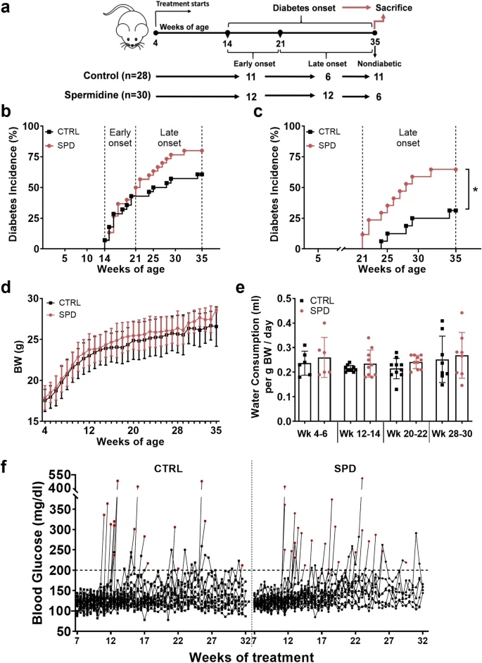 实验结果:每天喂养亚精胺(Spermidine)引起更高的糖尿病发病率。